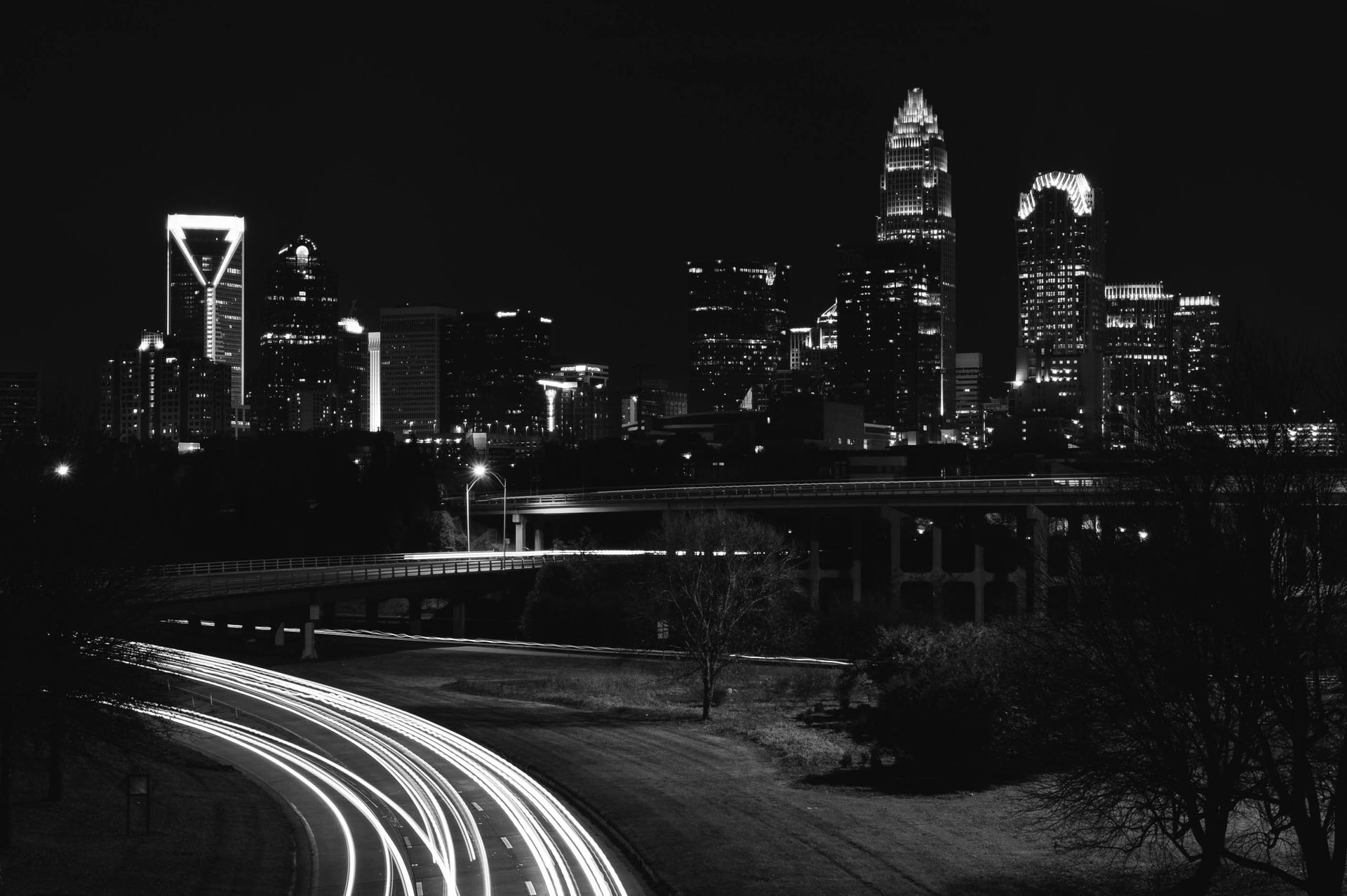 Black and white long expoure overlooking Charlotte, NC.